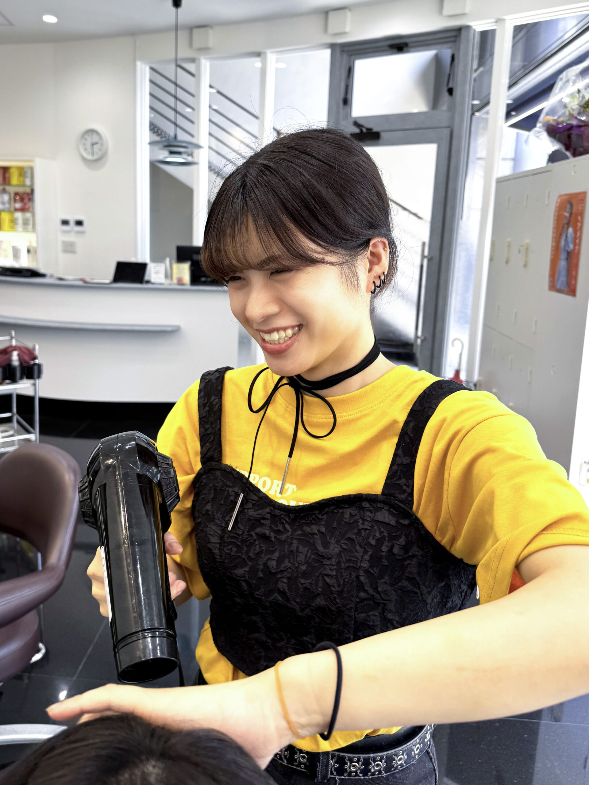 現在はスタイリストデビューを目標に、日々サロンワークと技術練習に向き合っています。